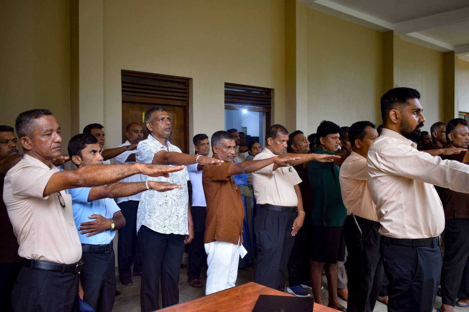 අලි අනාථාගාරය කාර්ය මණ්ඩලයේ සහභාගිත්වයෙන් රාජ්ය සේවා ප්රතිඥාව/ දිවුරුම 📜 ලබා දීම ඉන් අනතුරුව සිදු කෙරිණි. ඉන් පසු නියෝජ්ය අධ්යක්ෂ සියලුම කාර්ය මණ්ඩලය වෙනුවෙන් නව වසරට සුභාශිංසන එක් කිරීම සිදු කරන ලද අතර පරිපාලන නිලධාරි විසින් වත්මන් අභියෝග ජය ගැනීම සඳහා හඳුන්වා දී ඇති රාජ්ය ප්රතිපත්ති හා වැඩපිළිවෙළ පිළිබඳවත්, එකී අරමුණ සාක්ෂාත් කර ගැනීම සඳහා රාජ්ය නිලධාරියාගේ දායකත්වය පිළිබඳවත් කථාවක් පැවැත්වීමත් සිදු කෙරිණි 🤝.