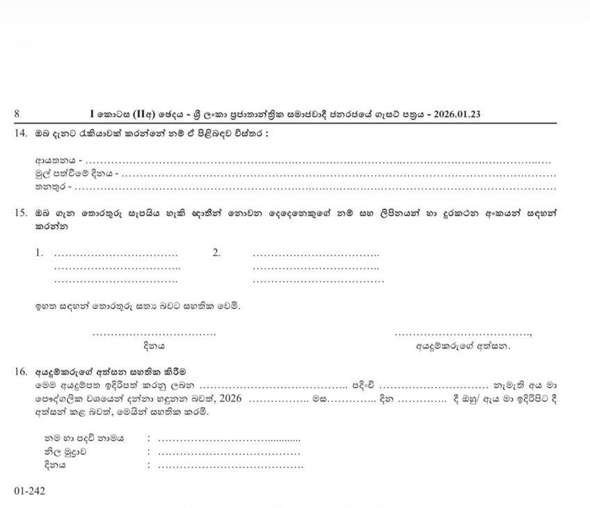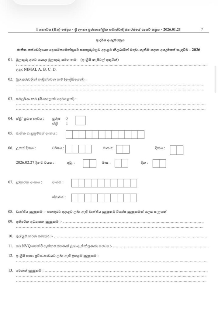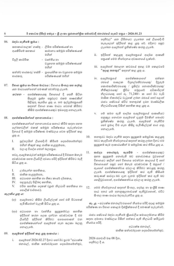 වැඩි විස්තර සඳහා (Gazette 2026.01.23):